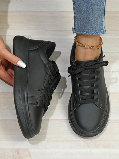 【SHEIN】女性 ブラック ミニマリスト レースアップフロント カジュアル シューズ
