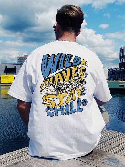 【SHEIN】スカル&レター インクプリント 半袖tシャツ メンズ