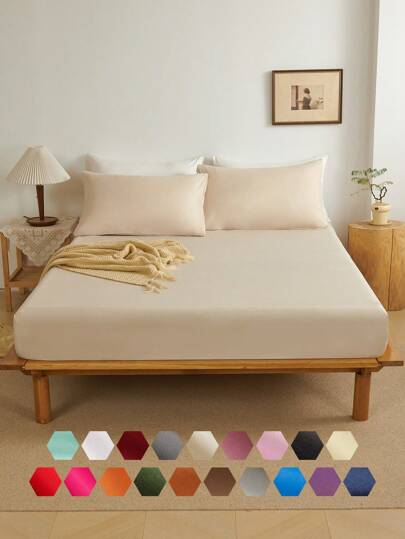 【SHEIN】3点セット 無地 プレーン カーキ フィットシーツセット 起毛マイクロファイ