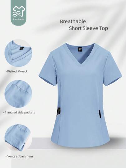 【SHEIN】SHEIN TaskFit 女性用VネックスクラブトップVネック 半袖 ナー
