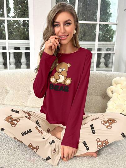 【SHEIN】Shein CoupledUp くまプリント クルーネック 長袖 トップス&