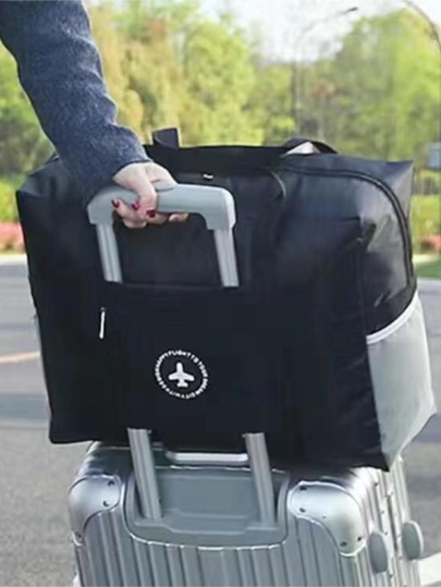 【SHEIN】1個 ポリエステル製 トラベルオーガナイザー、無地ブラック、トラベル用品、メ