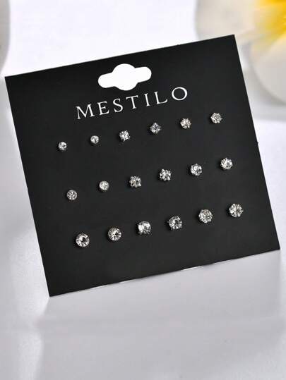 【SHEIN】MESTILO セットイヤリング ラウンド スタッドピアス 小さめ ジルコニ