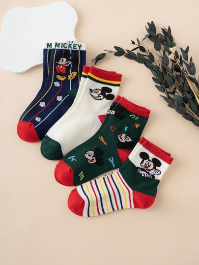 【SHEIN】ディズニー キャラクター ミッキーマウス ストライプ柄 キッズ クルーソック